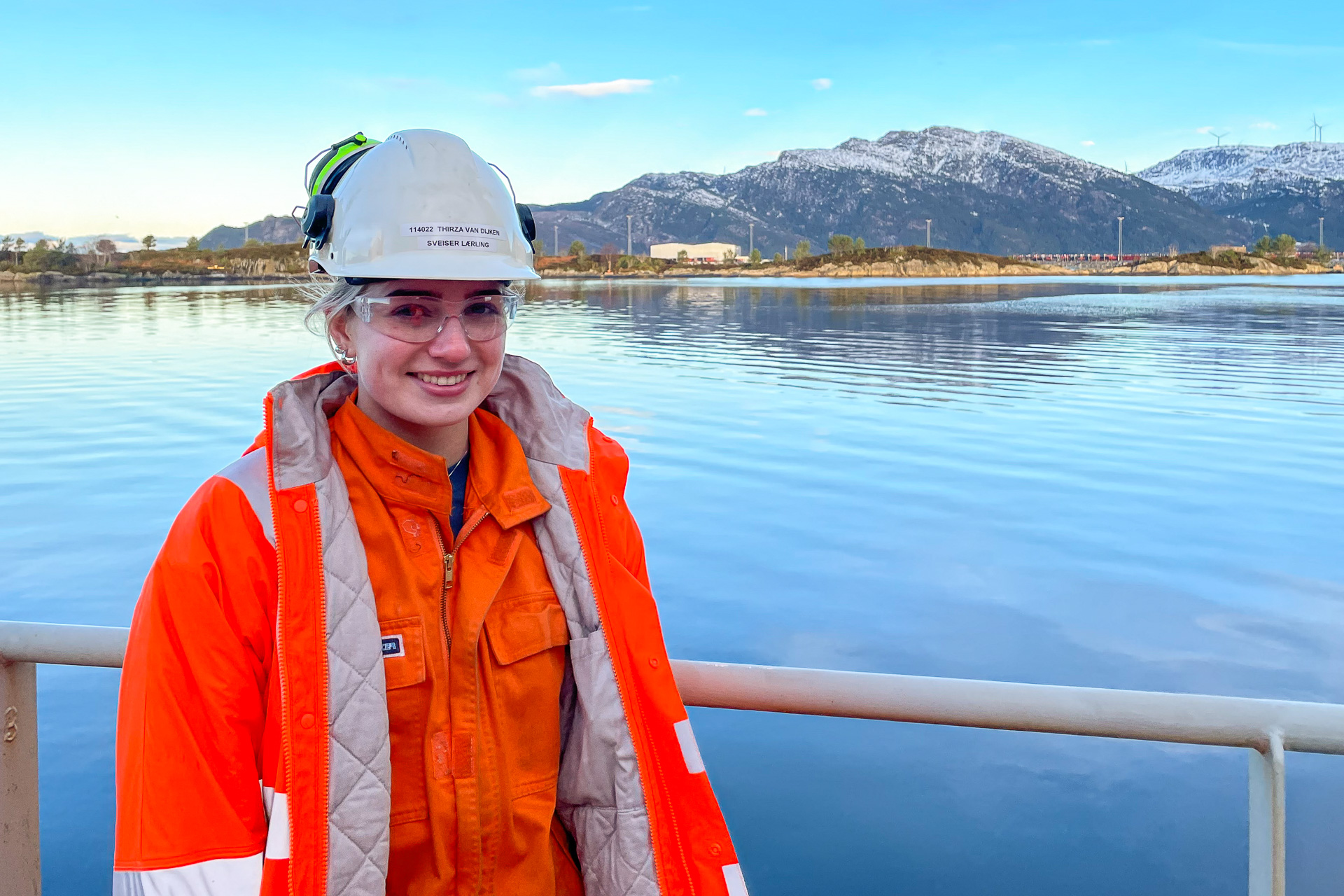 Under utplassering i VG2 jobbet Thirza i brennehallen hos Westcon. Da hun fortalte driftsleder produksjon, Vidar Brandsøy, om sin interesse for TIG-sveising, ble det tilrettelagt for å åpne en helt ny lærlingplass, kun for TIG-sveising. «Jeg visste ikke mye om Westcon før en venn nevnte bedriften. Nå er jeg glad for at jeg tok sjansen. Jeg har mange ulike arbeidserfaringer, og synes miljøet her er spesielt bra», forteller hun.